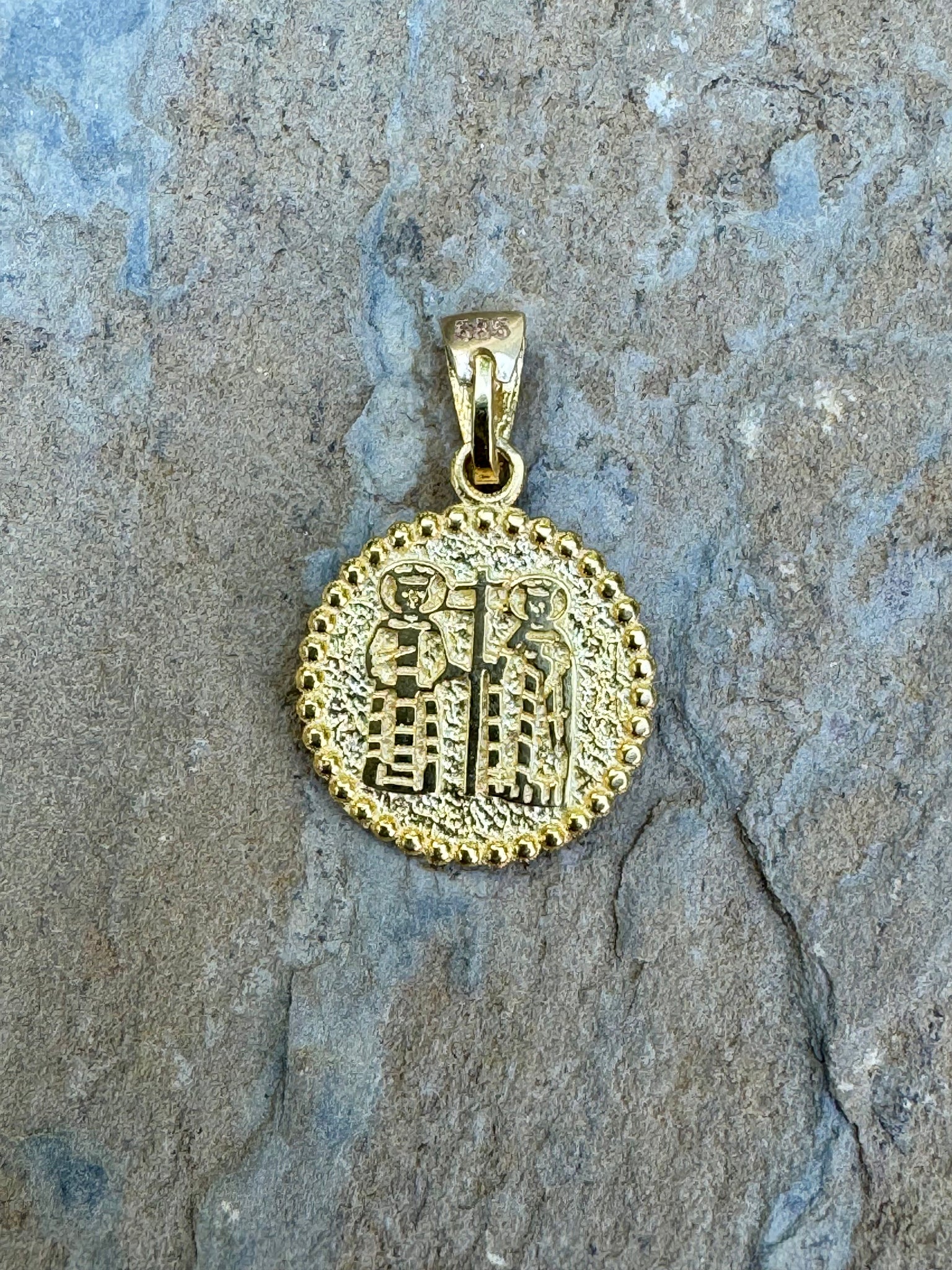 14k Yellow Gold Konstantinato Double Sided with St. Constantine and Helen Pendant GKP13