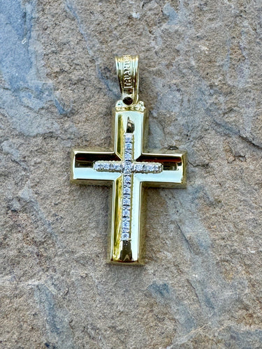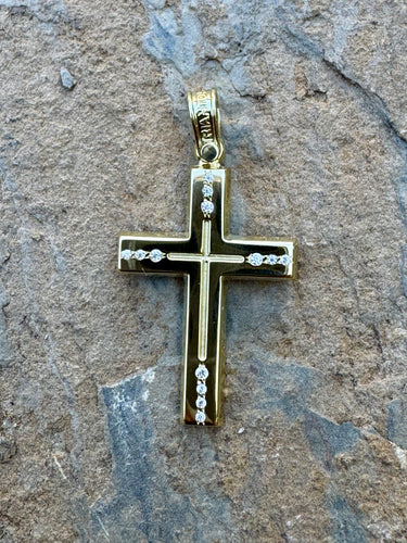 • Triantos 14k Yellow Gold Polished and Brushed Cross with Precious Stones 4.61g TGC202551