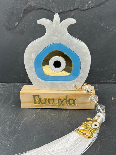 Table Top Pomegranate Gouri on Plexiglass with wooden Stand, Beads and Tassel G3041