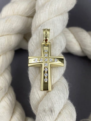 Triantos 14k Yellow Gold Cross Polished with Precious Stones 222125Triantos 14k Yellow Gold Cross Polished with Precious Stones 222125