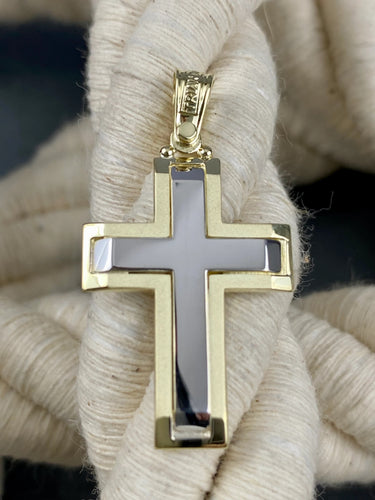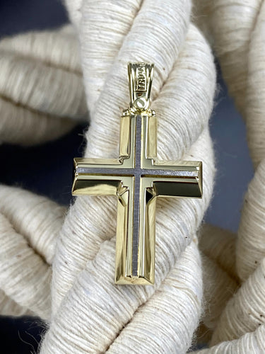 Triantos 14k Yellow and White Gold Cross Polished and Brushed 221282Triantos 14k Yellow and White Gold Cross Polished and Brushed 221282