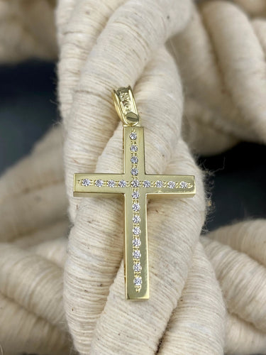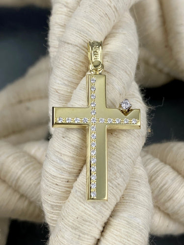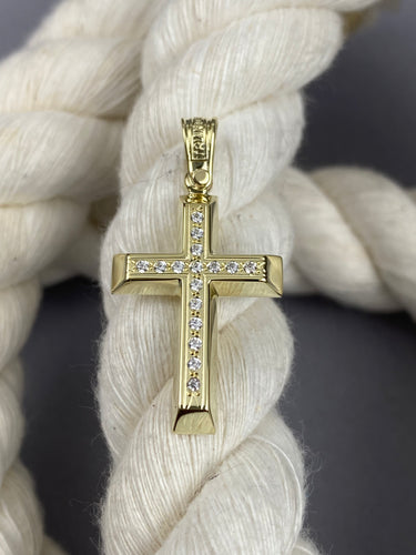 Triantos 14k Yellow Gold Cross Polished and Brushed with Precious Stones 222434Triantos 14k Yellow Gold Cross Polished and Brushed with Precious Stones 222434