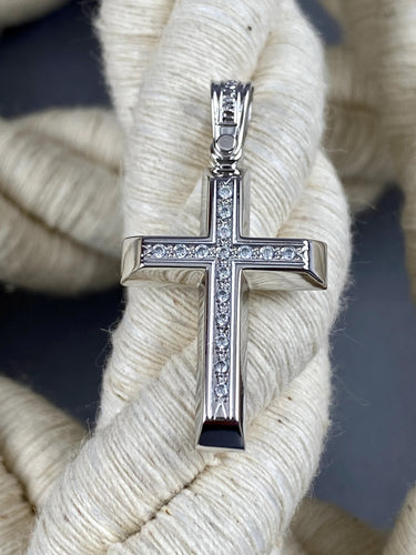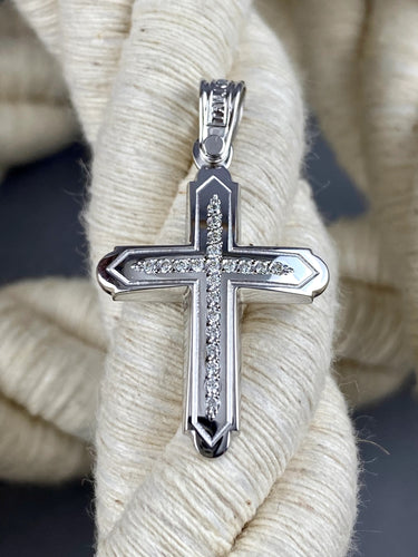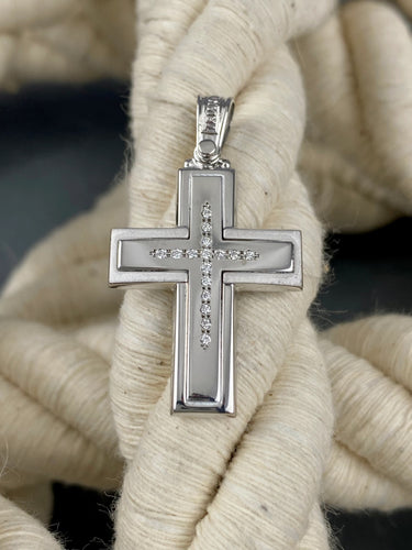 Triantos 14k White Gold Cross Polished and Brushed with Precious Stones 2.71g 222501Triantos 14k White Gold Cross Polished and Brushed with Precious Stones 2.71g 222501