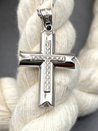 Triantos 14k White Gold Cross Polished and Brushed with Precious Stones 3.84g 222124Triantos 14k White Gold Cross Polished and Brushed with Precious Stones 3.84g 222124