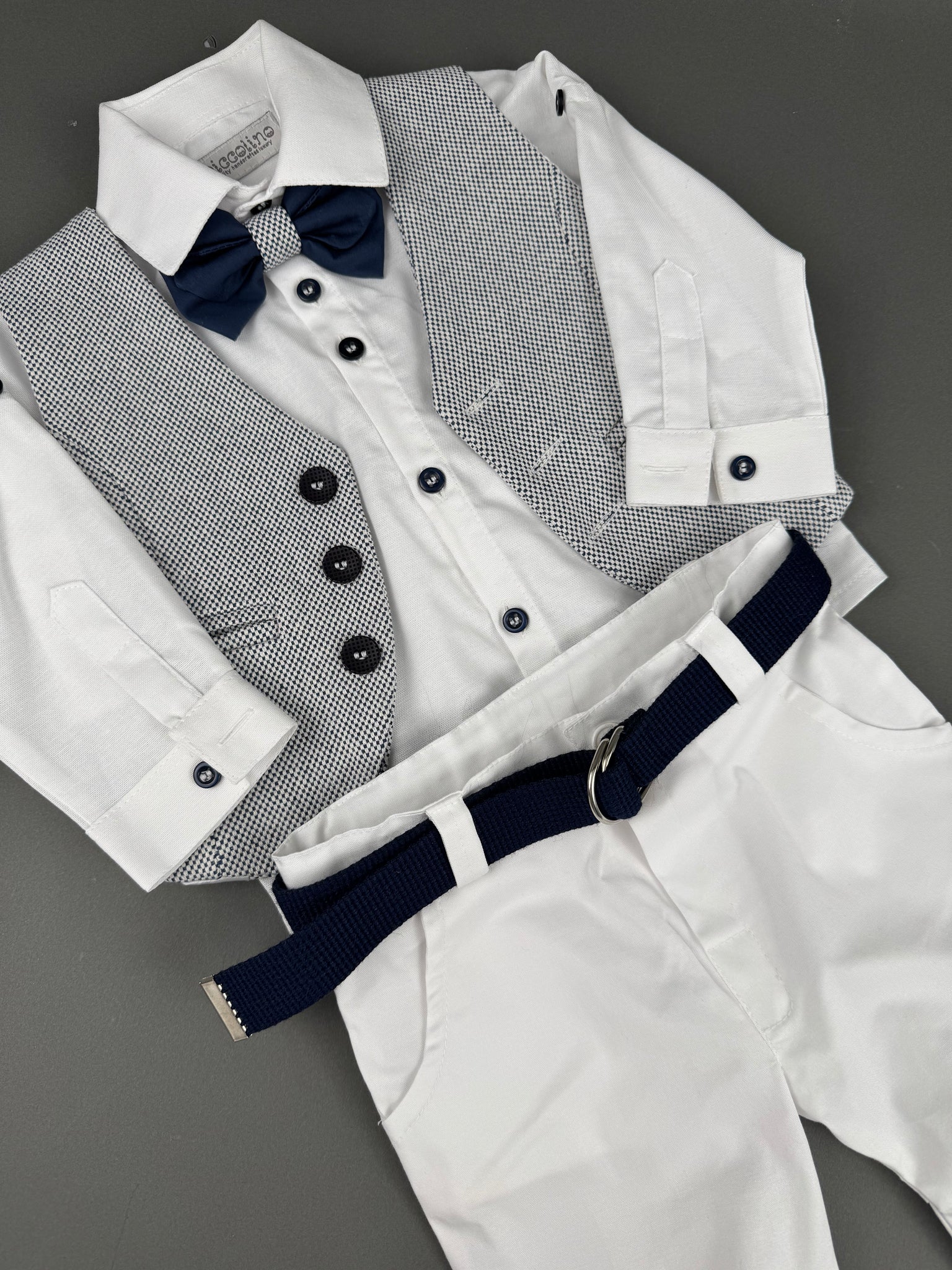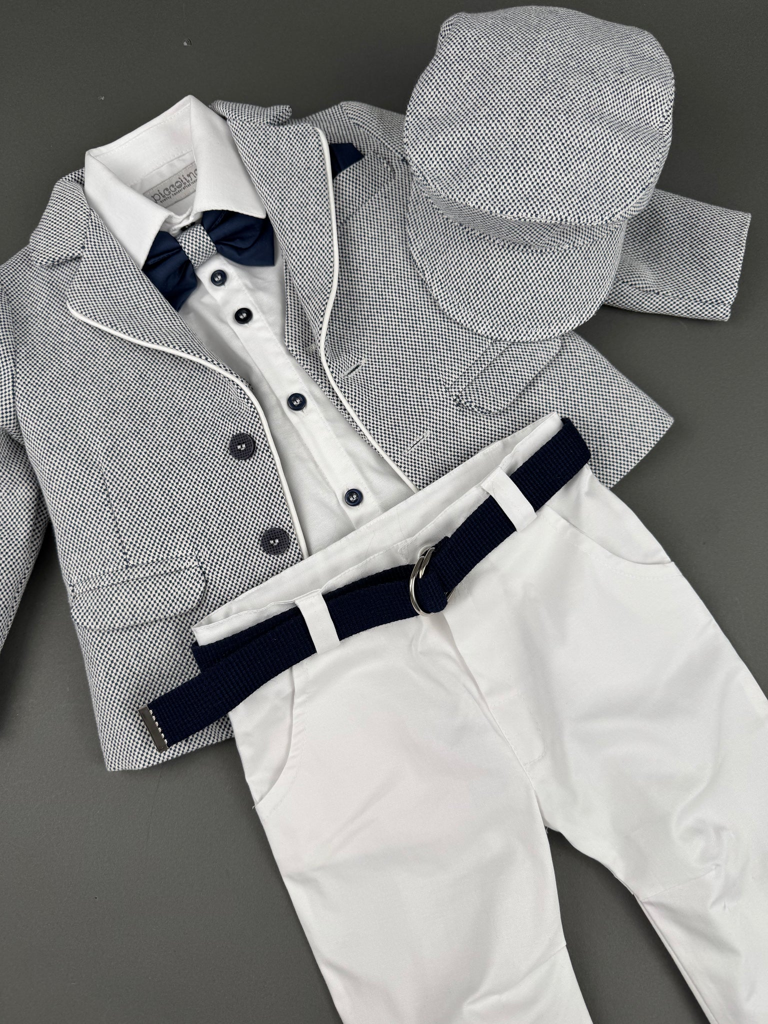 Rosies Collections 7pc suit Pants, Vest, Dress Shirt, Bow Tie, Belt, Blazer and Hat, made in Greece exclusively for Rosies Collections S202540