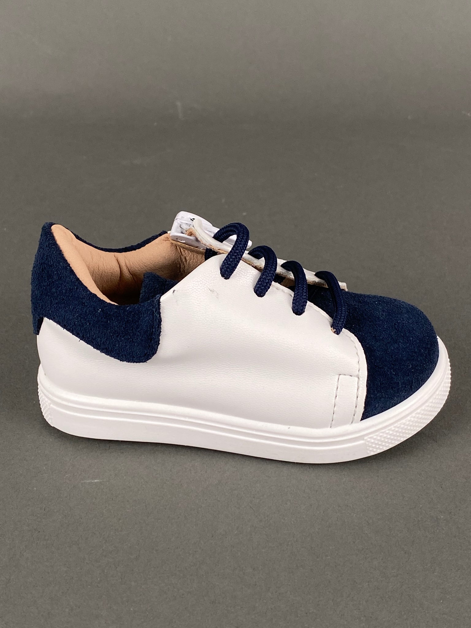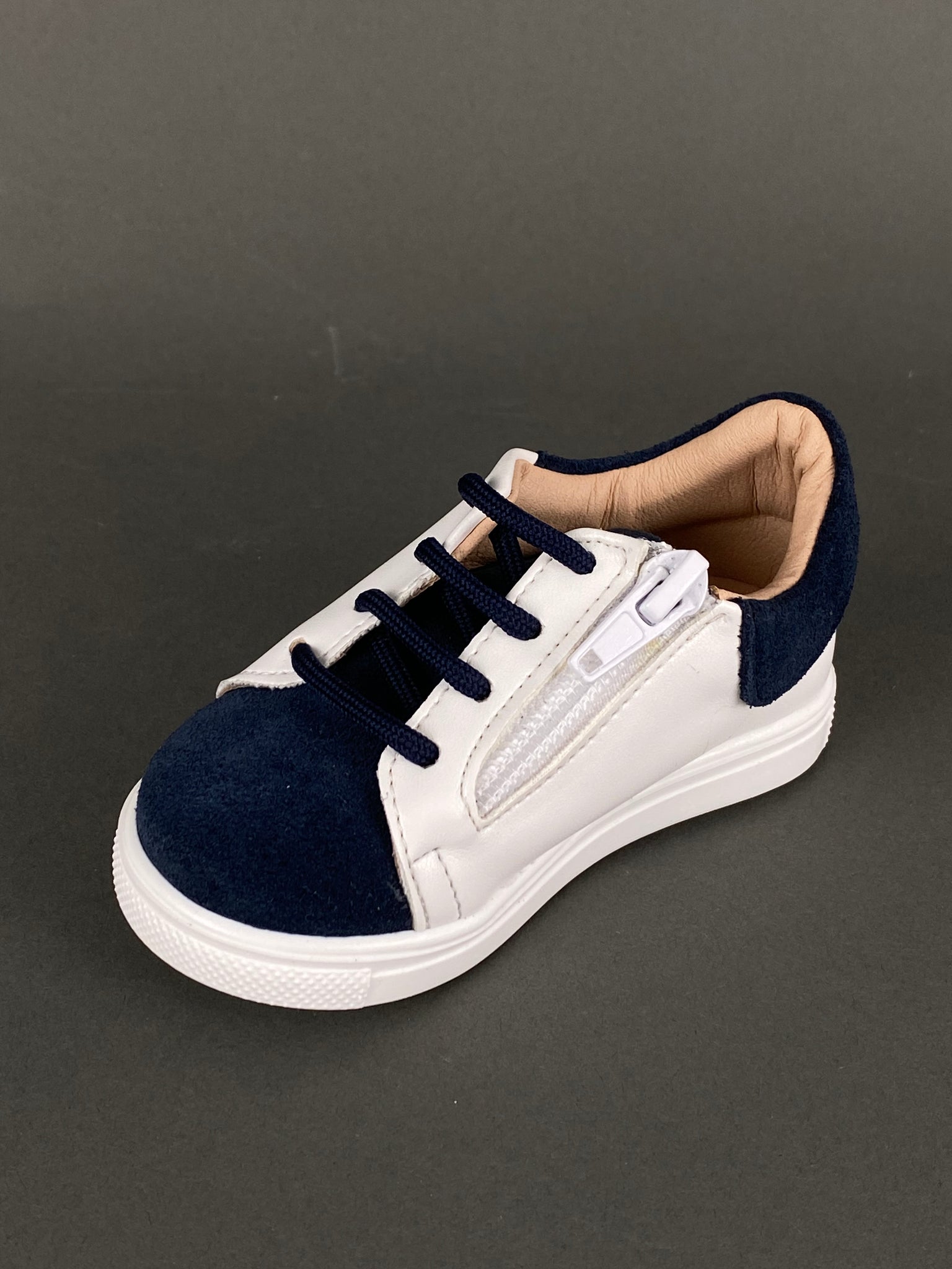 Gorgino White Leather with Navy Blue Suede, Shoelaces and Zipper GH201735Made in Greece