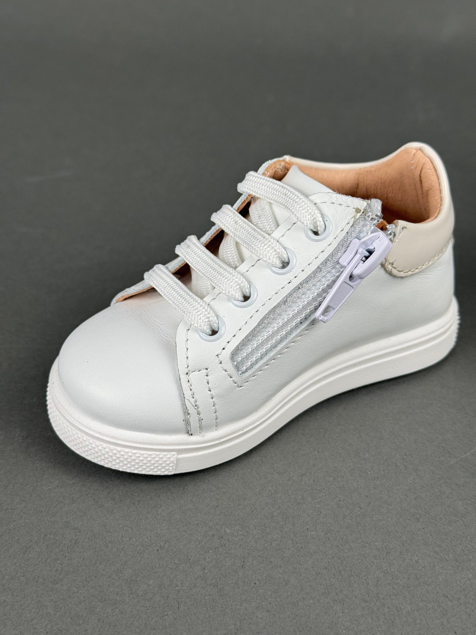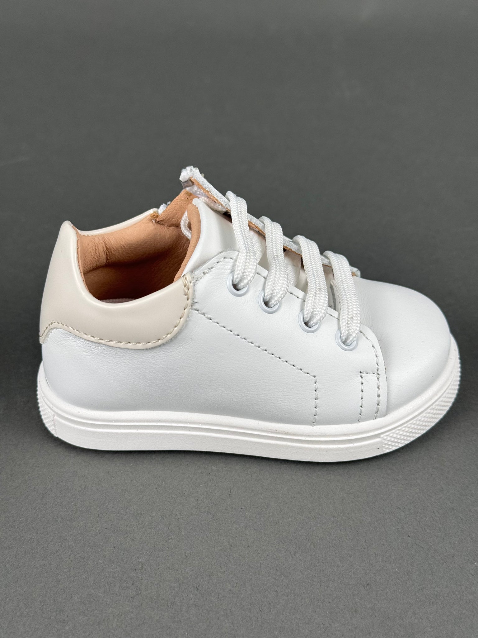 Gorgino White Leather with Tan Walking Shoe, Shoelaces and Zipper GH202510