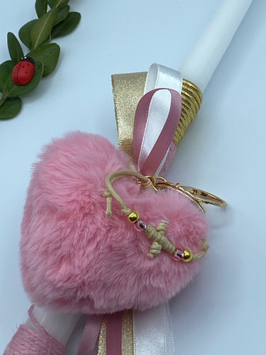 • Corded Easter Candle with Heart PomPom Keychain and Adjustable Cross Bracelet EC202213