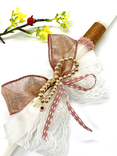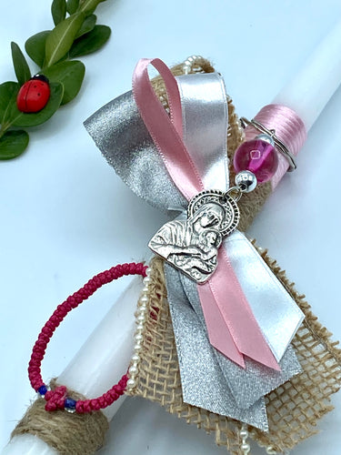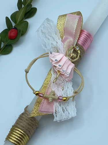 • Corded Easter Candle with Ballerina Clip and Adjustable Cross Bracelet EC202214