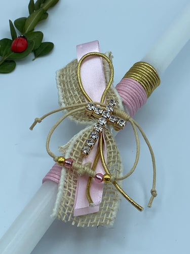 • Corded Easter Candle with Rhinestone Cross Broach and Adjustable Cross Bracelet EC202215