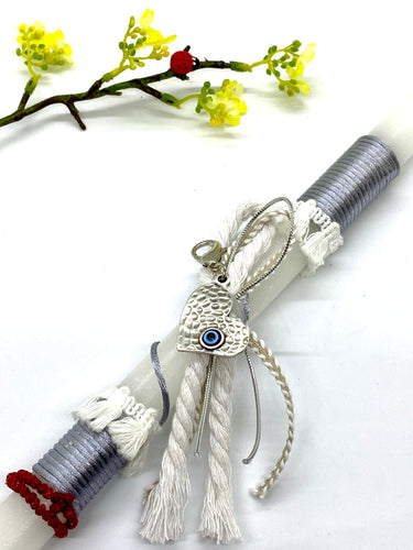 • Corded Easter Candle Metal Panagia Keychain, Glass Bead and Koboskini Bracelet EC202211