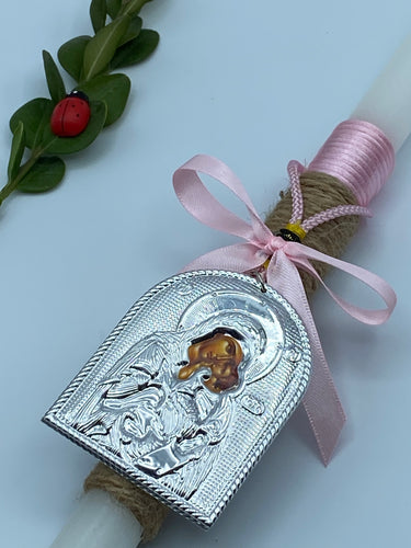 • Corded Easter Candle with Hanging Panagia Icon EC202212