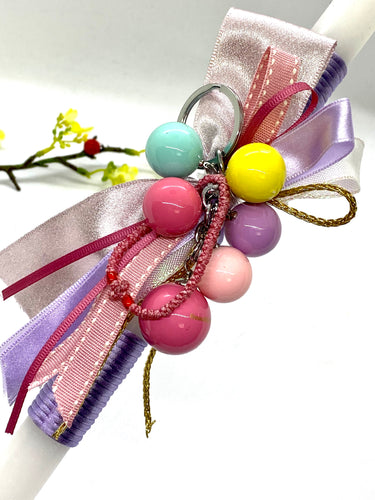 • Corded Easter Candle with Metal Cross keychain, Glass Bead and Adjustable Bracelet EC202246
