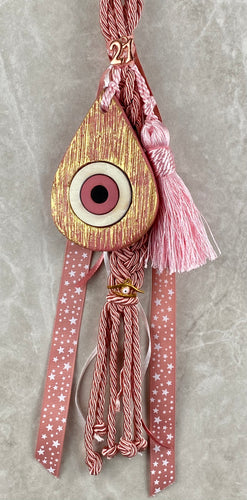 Large Tear Drop Pink Mati on Braided Cord Gouri with Tassel and Metal CharmsLarge Tear Drop Pink Mati on Braided Cord Gouri with Tassel and Metal Charms