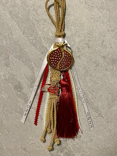 Large Ceramic Pomegranate on Braided Cord Gouri with large tassel, ribbons and metal charmsLarge Ceramic Pomegranate on Braided Cord Gouri with large tassel, ribbons and metal charms