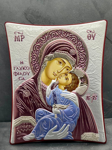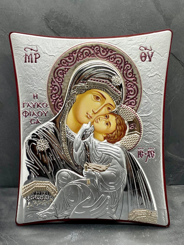 An original copy of Byzantine Holy Icon Glykofilousa made with 925* Silver on Cherry Wood SI4An original copy of Byzantine Holy Icon Glykofilousa made with 925* Silver on Cherry Wood SI4