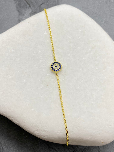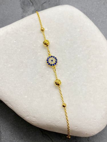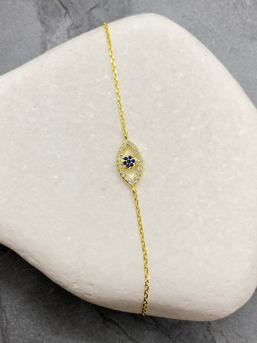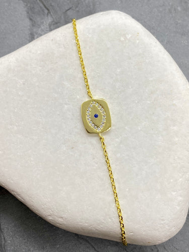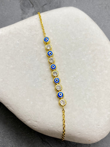 925” Sterling Gold Evil Eye Mati with Rhinestones Bracelet GB925” Sterling Gold Evil Eye Mati with Rhinestones Bracelet GB