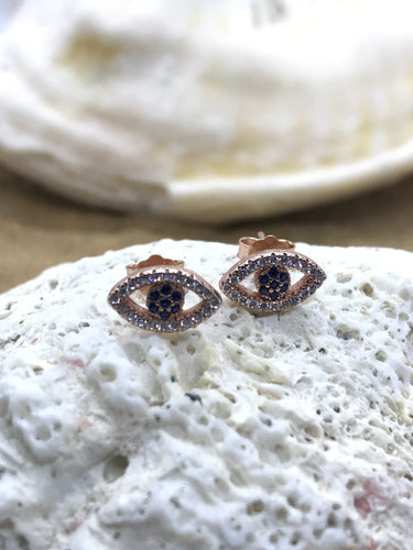 Evil Eye Mati Earrings Rose Gold 1Evil Eye Mati Earrings Rose Gold 1