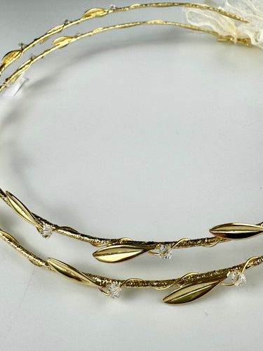 Polished Gold Leaf Stefana with Crystals SI57Polished Gold Leaf Stefana with Crystals SI57