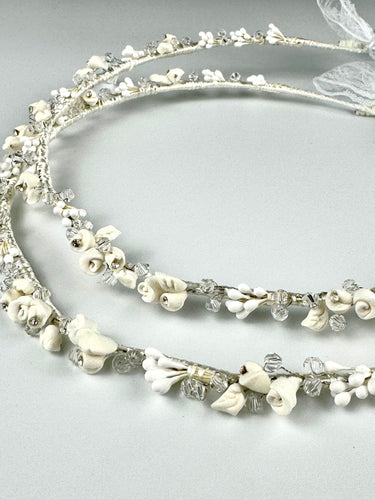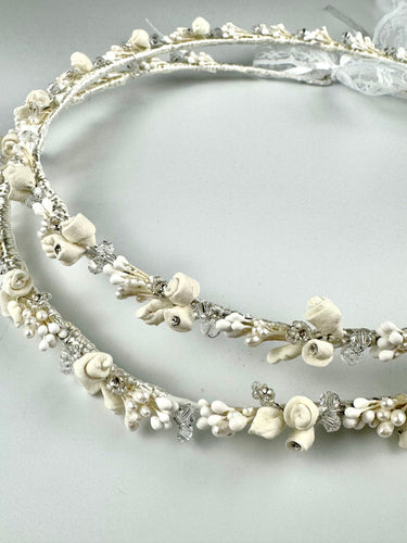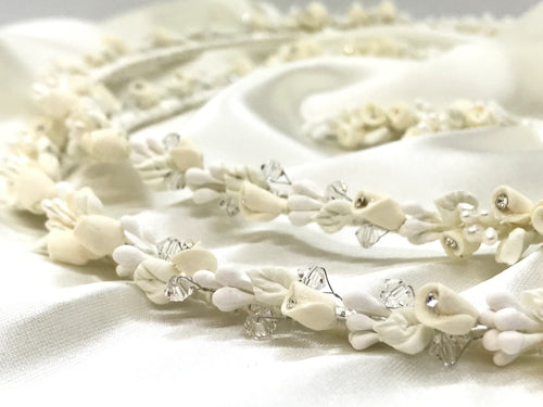 White Rosettes with Swarovski Crystals Wedding Crowns B16White Rosettes with Swarovski Crystals Wedding Crowns B16