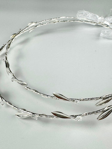 Polished Silver Leaf Stefana with Crystals SI58Polished Silver Leaf Stefana with Crystals SI58