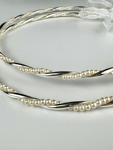 Silver Wedding Crowns with Pearl Twist S1106Silver Wedding Crowns with Pearl Twist S1106
