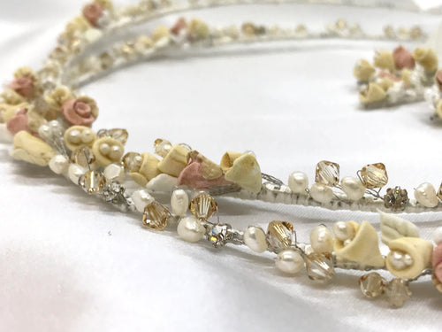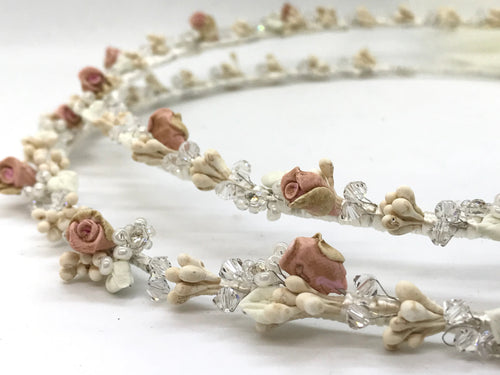White Rosettes with Pearls Wedding Crowns B19White Rosettes with Pearls Wedding Crowns B19